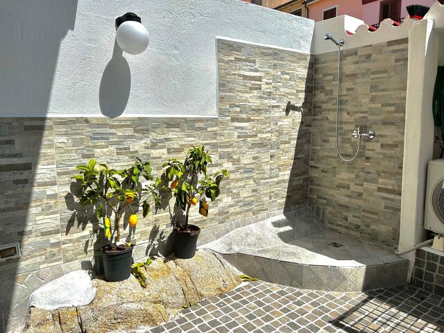 - Cortile attrezzato: Un delizioso cortile privato, perfetto per pranzare all'aperto o semplicemente rilassarsi. È dotato di tavolo e sedie per i vostri momenti di convivialità e di una comoda doccia esterna con acqua calda e fredda per rinfrescarvi al ritorno dal mare.
